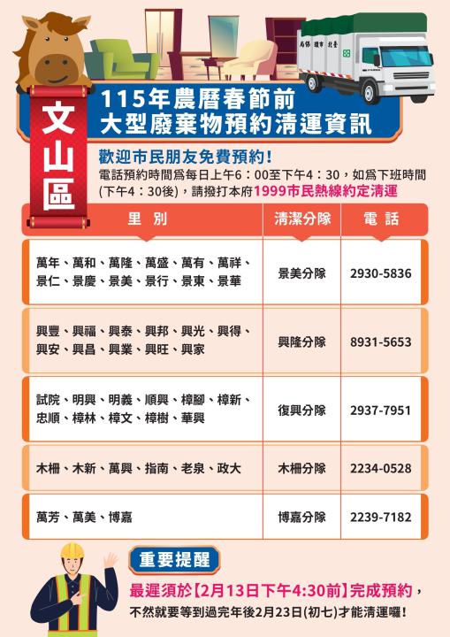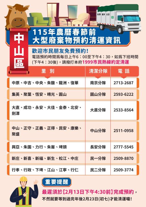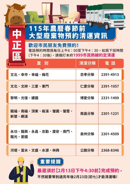 本市115年年終大掃除暨春節期間垃圾清運方式