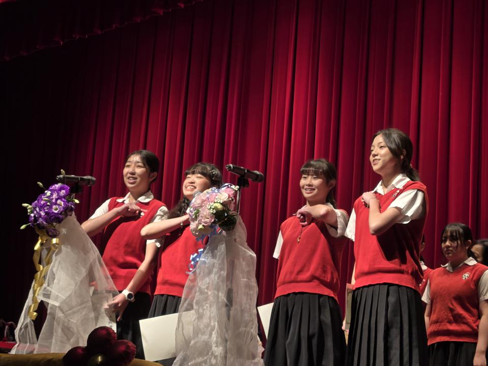 「感恩奉茶禮」則是典禮的最高潮,學生雙膝跪地,雙手奉上感恩茶,分別象徵對父母的「養育之恩」、「教導之情」與「成全之愛」,場面溫馨動人,深刻體現教會學校以愛育人的精神。