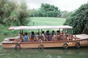 搭乘畫舫,沿著河道巡禮園區並在小魚小鴨熱情歡迎下感受文人煙雨濛濛的詩境