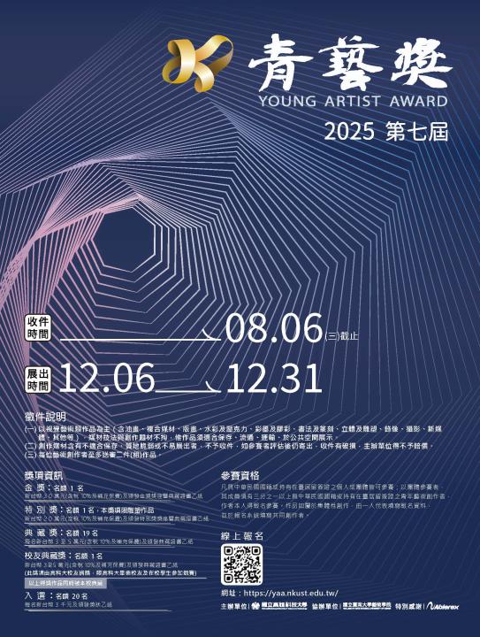 (二)皆以線上報名,初審通過者,本校將通知申請人提送原作參加複審;初審未通過者恕不另行通知;作品寄送及其獎項和相關規定,詳如比賽簡章。