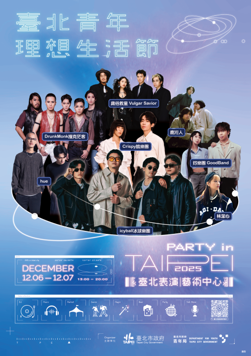 脫口 秀演出,並邀請知名人氣樂團輪番開唱,打造一場屬於青 年世代的年度生活盛典,呈現臺北青年在國際交流、公共 參與、職涯探索、