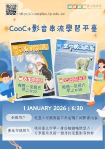3、使用方式:於「臺北酷課雲」首頁點選「CooC+影音串 流學習平臺」,登入帳號後,即可觀看本月及前一個 月之影音內容(未登入者亦可觀看當日及前兩日影音 內容)。