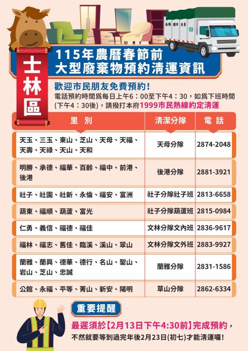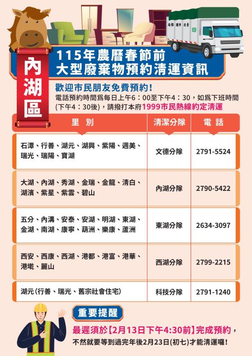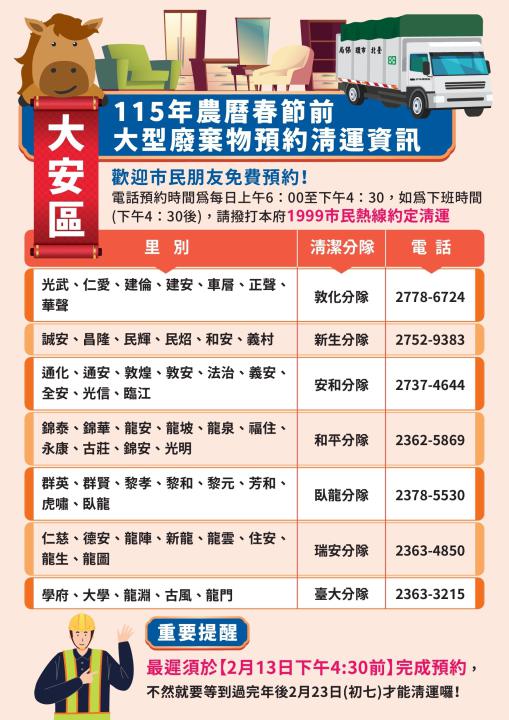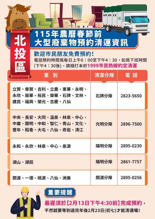 本市115年年終大掃除暨春節期間垃圾清運方式