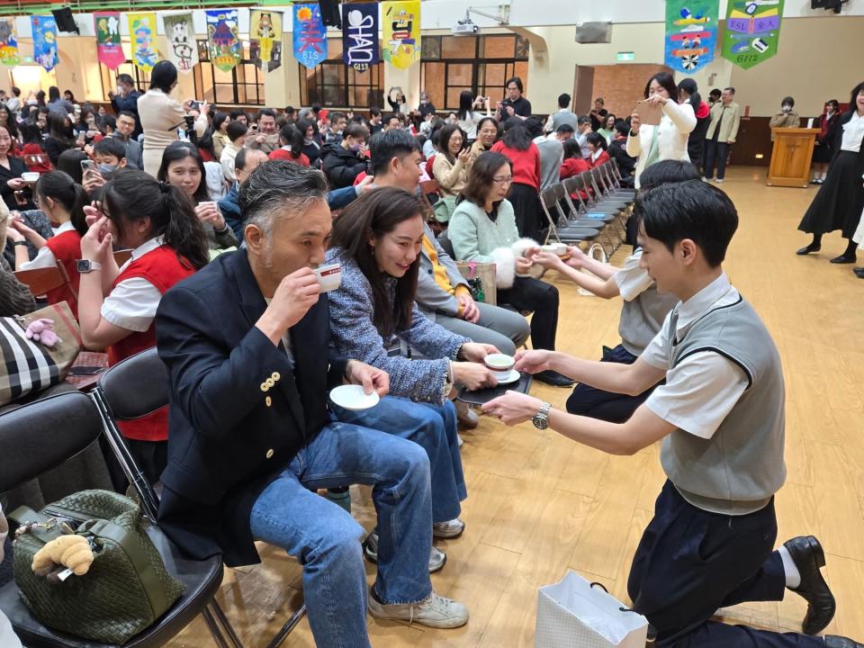 「感恩奉茶禮」則是典禮的最高潮,學生雙膝跪地,雙手奉上感恩茶,分別象徵對父母的「養育之恩」、「教導之情」與「成全之愛」,場面溫馨動人,深刻體現教會學校以愛育人的精神。