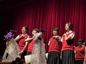 本次典禮依循六大儀式進行——「生命的呢喃」、「聖經選讀」、「祝福禮」、「授與禮」、「宣告禮」及「感恩奉茶禮」,環環相扣、意義深遠。活動由高三學生籌備小組精心策畫「生命的呢喃」,透過影片、舞蹈與音樂,細膩呈現成長歷程中的感動與蛻變,流露對生命的感恩與珍惜。隨後的「聖經選讀」,學生以中、英文誦讀《格林多前書》第13章,傳遞「愛永不止息」的信念,讓在場每一個人都深深感受到信仰所帶來的溫暖力量。