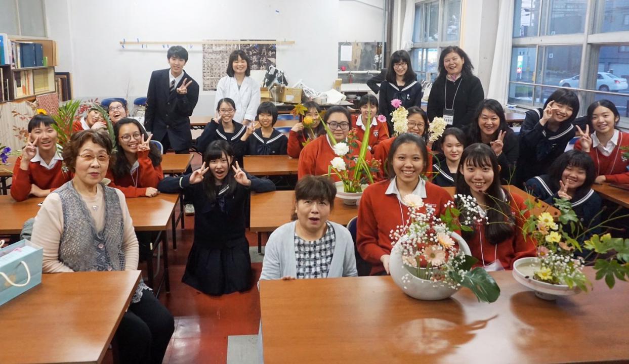 學生入班學習內容包含日本文化中特有的書道和花道以及英文會話等豐富的課程。本校日文科三年級同學均達日文N3基礎,甚至有人已達N2程度,所以很快地就融入班級和寄宿家庭。其中部分日本接待家庭在課後還熱情地帶學生參觀札幌名勝、泡溫泉,除了交到異國好朋友,也迅速成為日本家庭的一份子。雖然參訪期間天氣濕冷,但是每位臺北靜修的師生都受到盛情的招待,內心感到無比溫暖。
