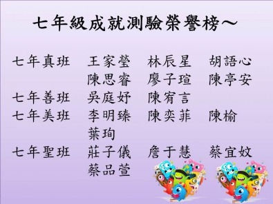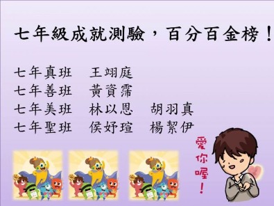 成就測驗榮譽榜 (成就測驗成績達90分以上
